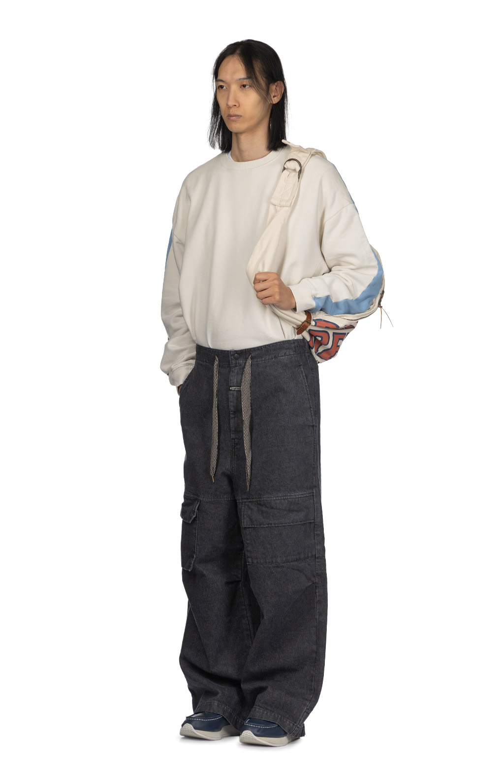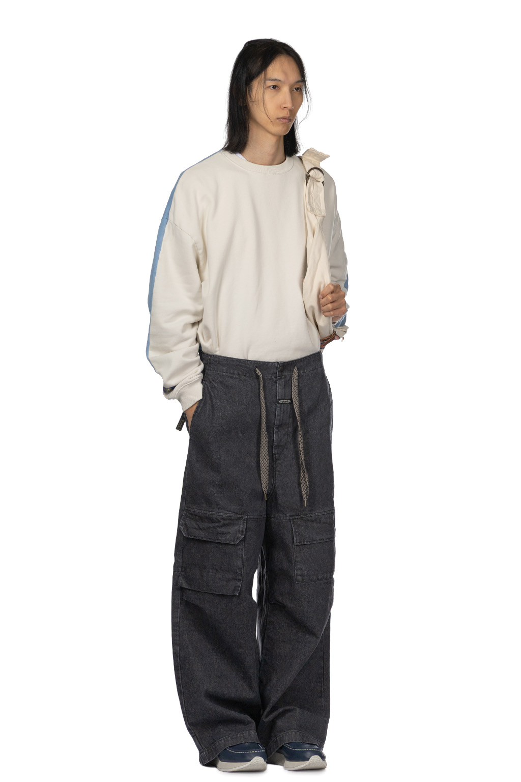 14oz Denim SHOVEL Baggy Pants - Black x Natural