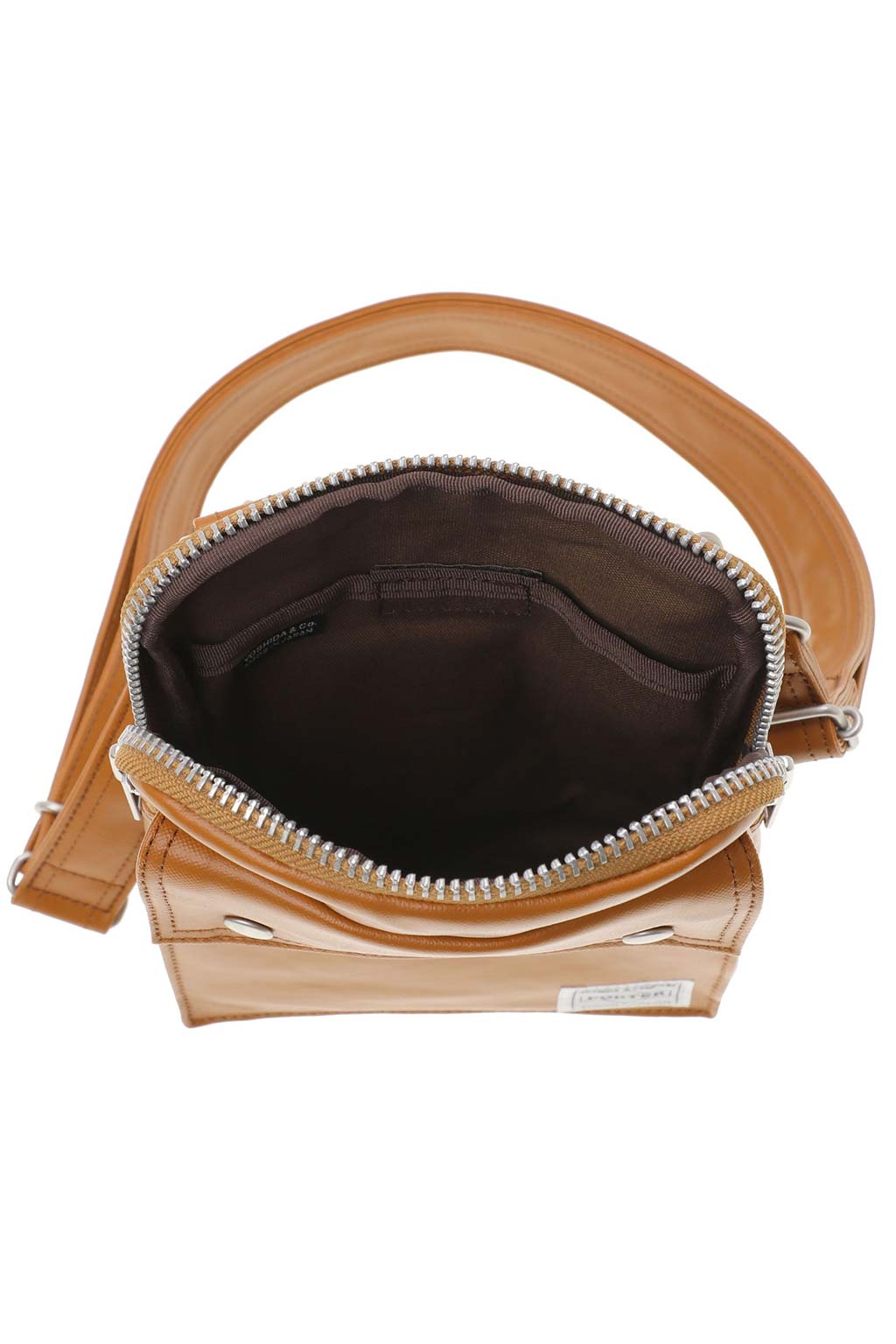 The main material is a fabric made by crimping polyurethane on the surface of densely woven No. 10 canvas. This fabric expresses a unique texture by post-dyeing and shrinking the fabric, and then rubs the bag after making it into a product to get a moderate wrinkle. It is a fabric with a unique texture that looks different from general fabrics and looks like leather.