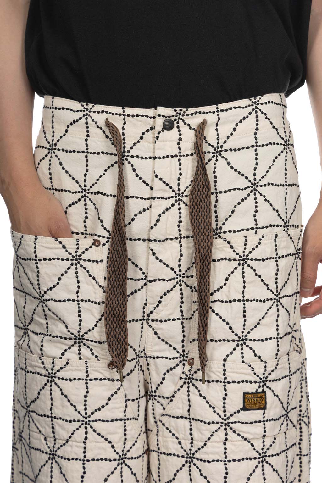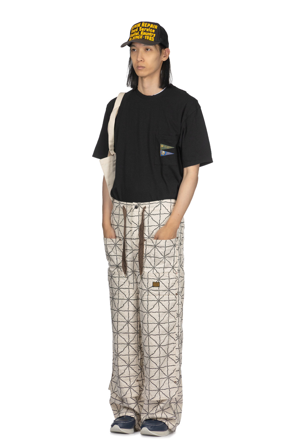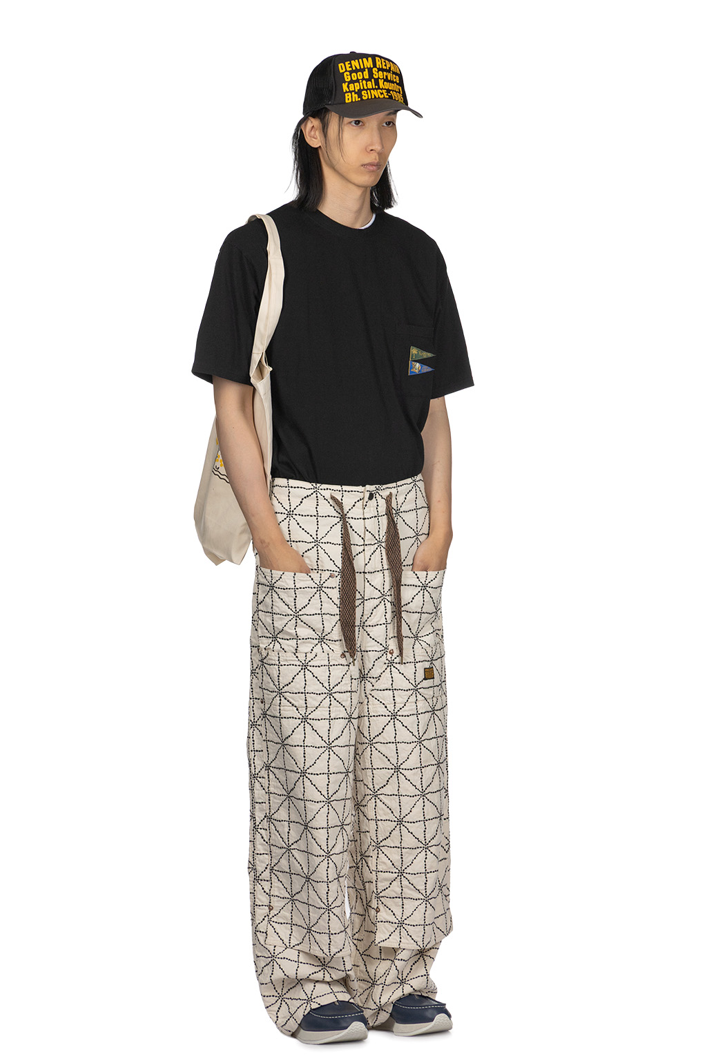 8oz Color Denim FOLD DOJO W-Knee EASY Baggy Pants - Natural