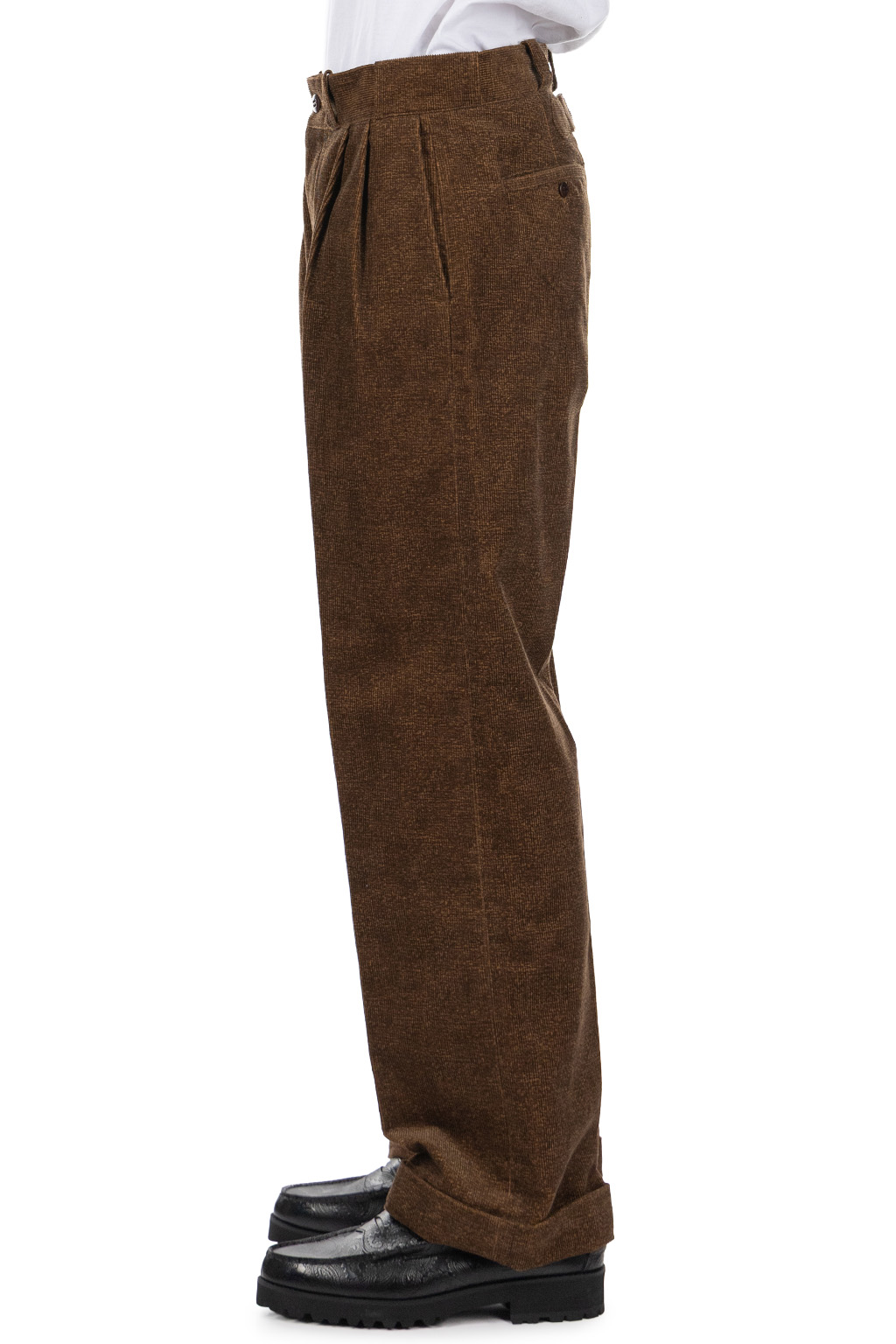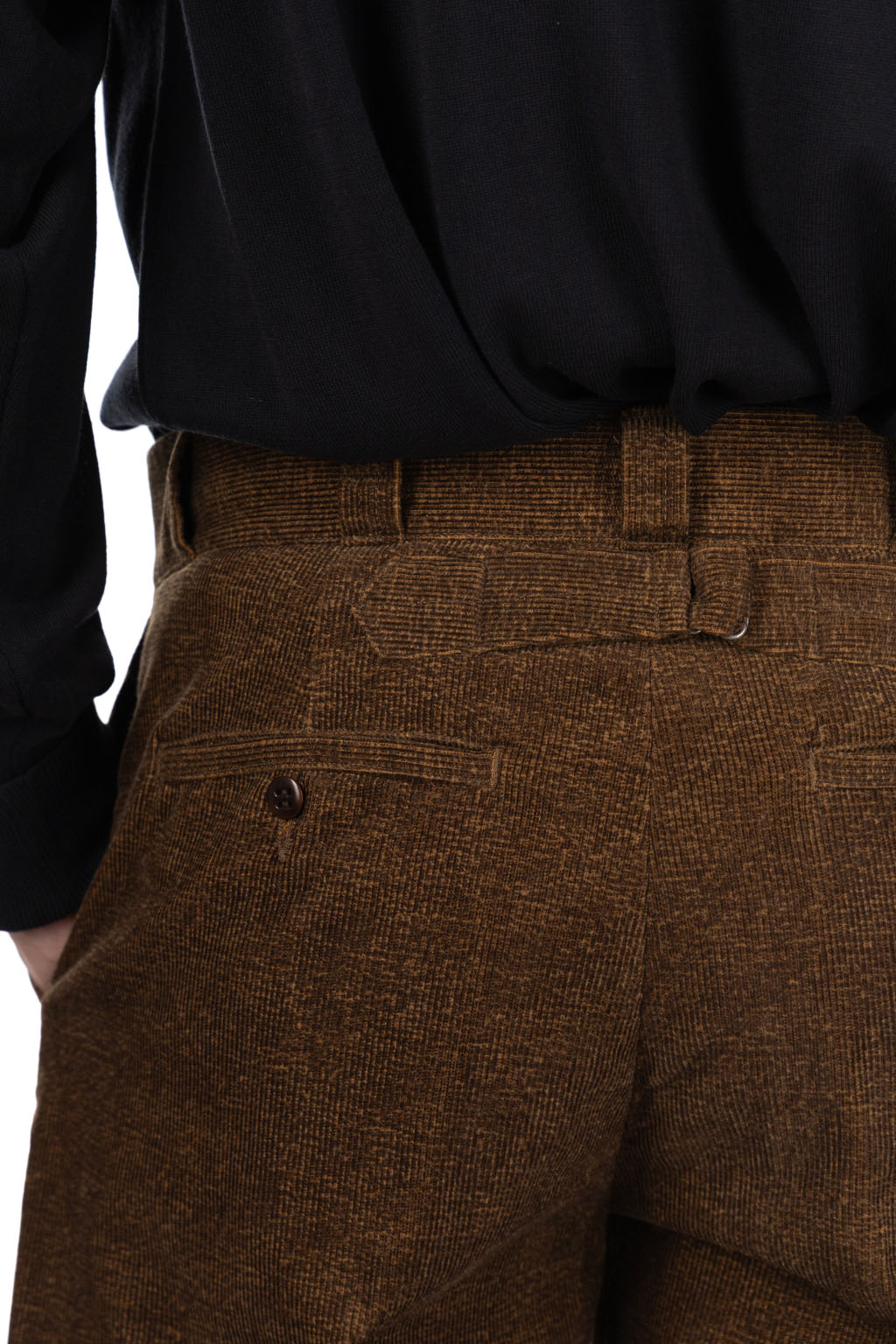 • Waistband features reverse-side buttons allowing styling with suspenders