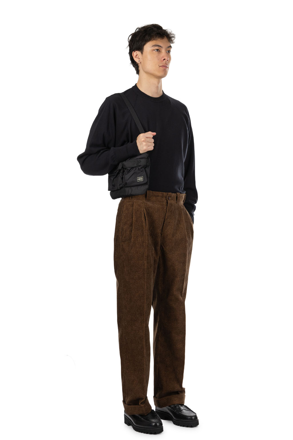 • Made in “TWEEDUROY” fabric — a corduroy printed with a tweed pattern to mimic wool tweed, giving visual texture with added durability