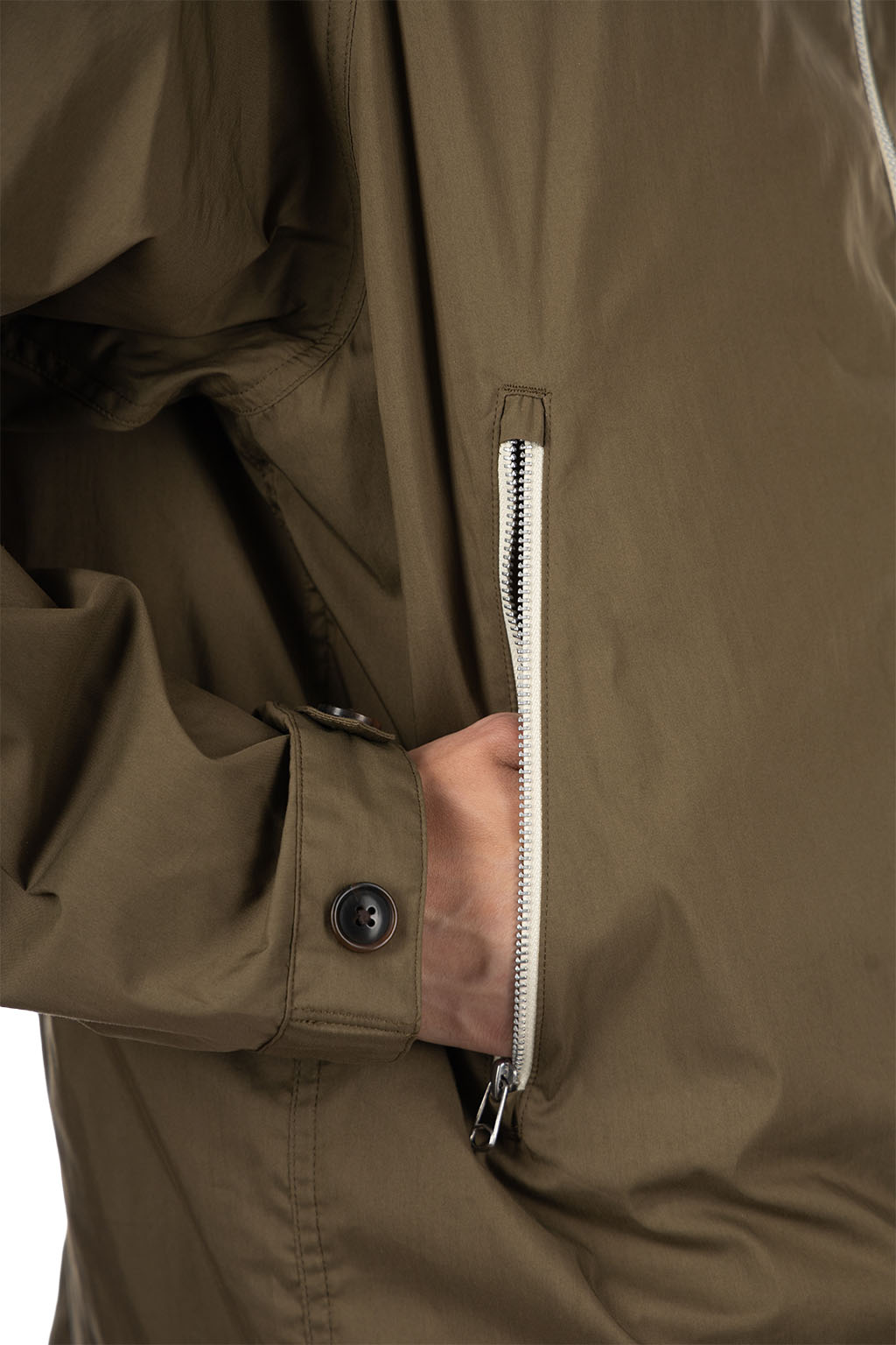 • A double zip hoodie with adjustable silhouette using drawstrings at the waist and hem