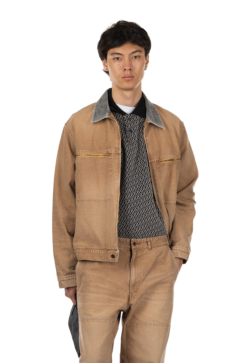 • Regular fit with a short, sleek fit and slightly long sleeves. It features a unique zipper pocket detail created by applying the same fabric from the back