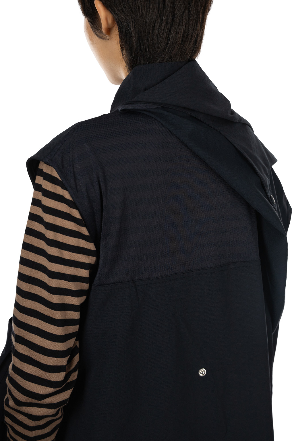 • Pockets: gusseted chest pocket, concealed side-seam pocket, slash pockets on both sides