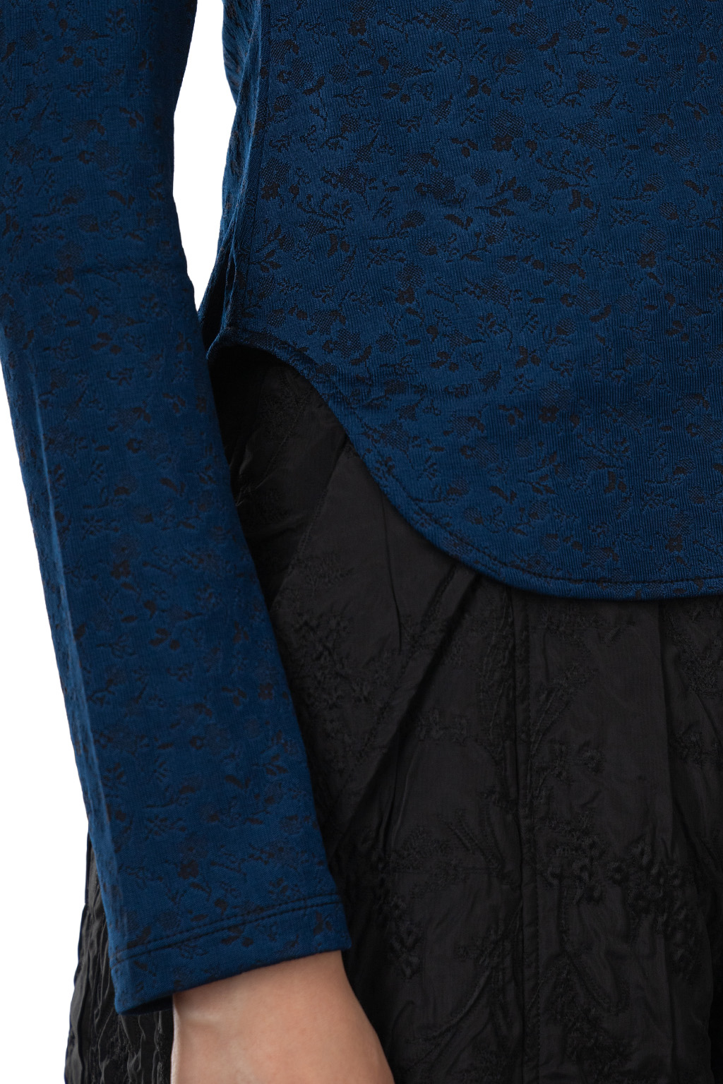 Floral Jacquard Fraise Stitch High Neck Top - Navy