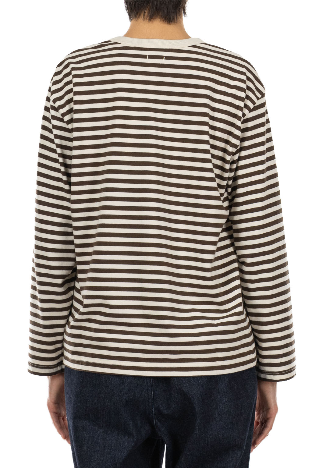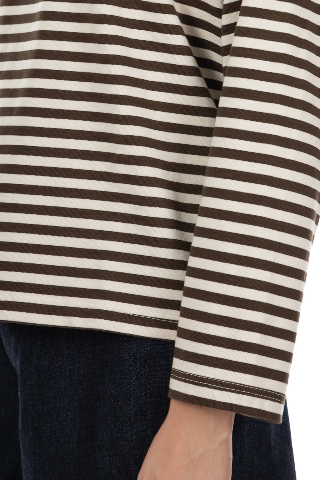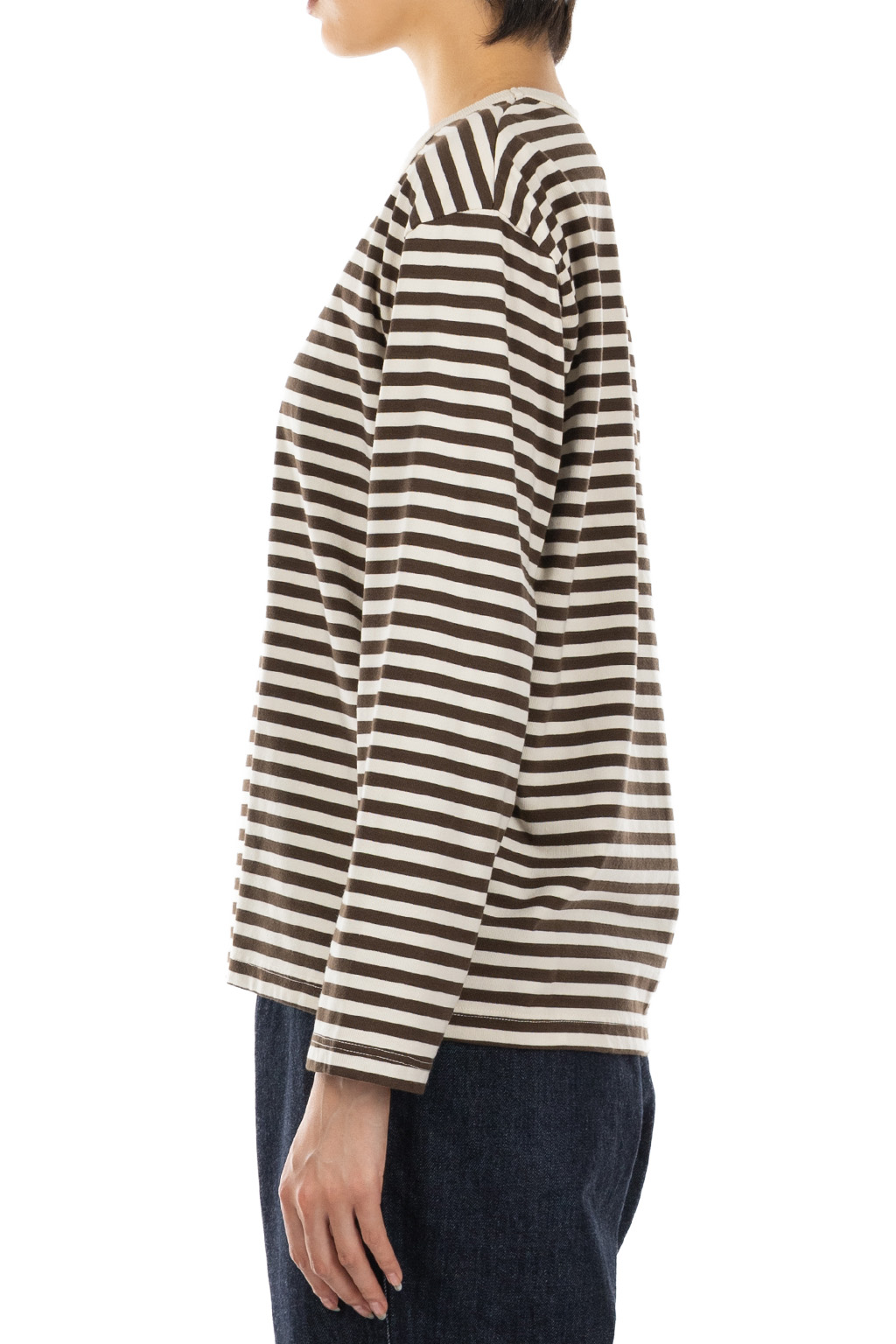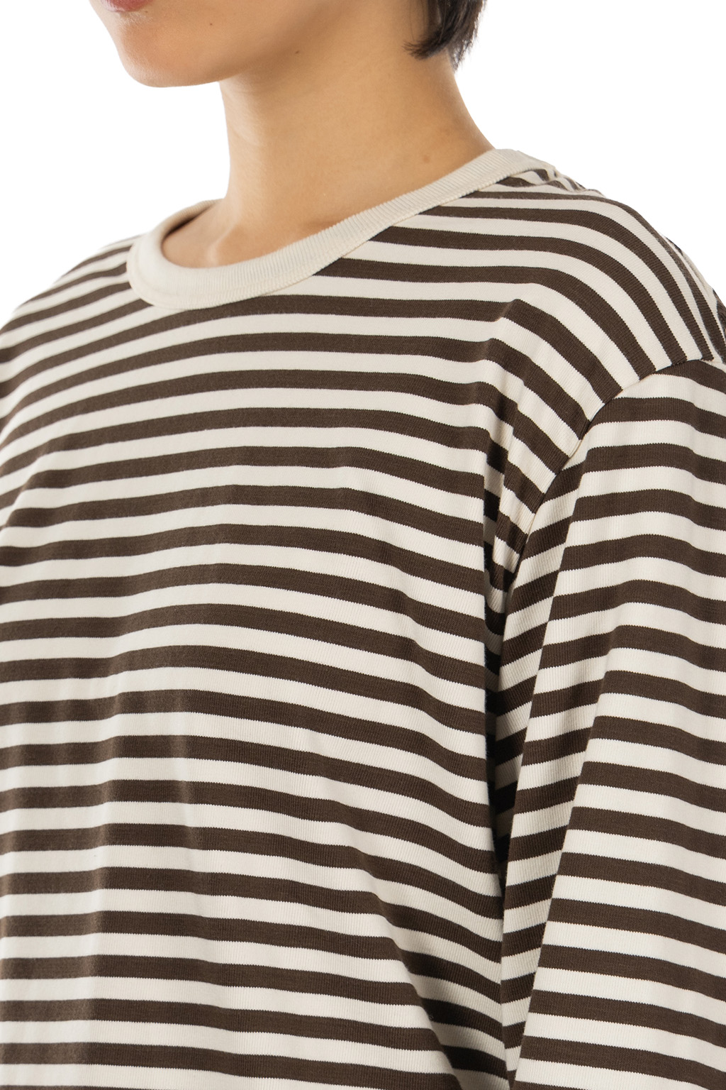 Women COOLMAX Stripe Jersey Long Sleeves Tee - Brown x Natural