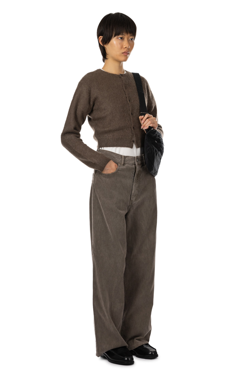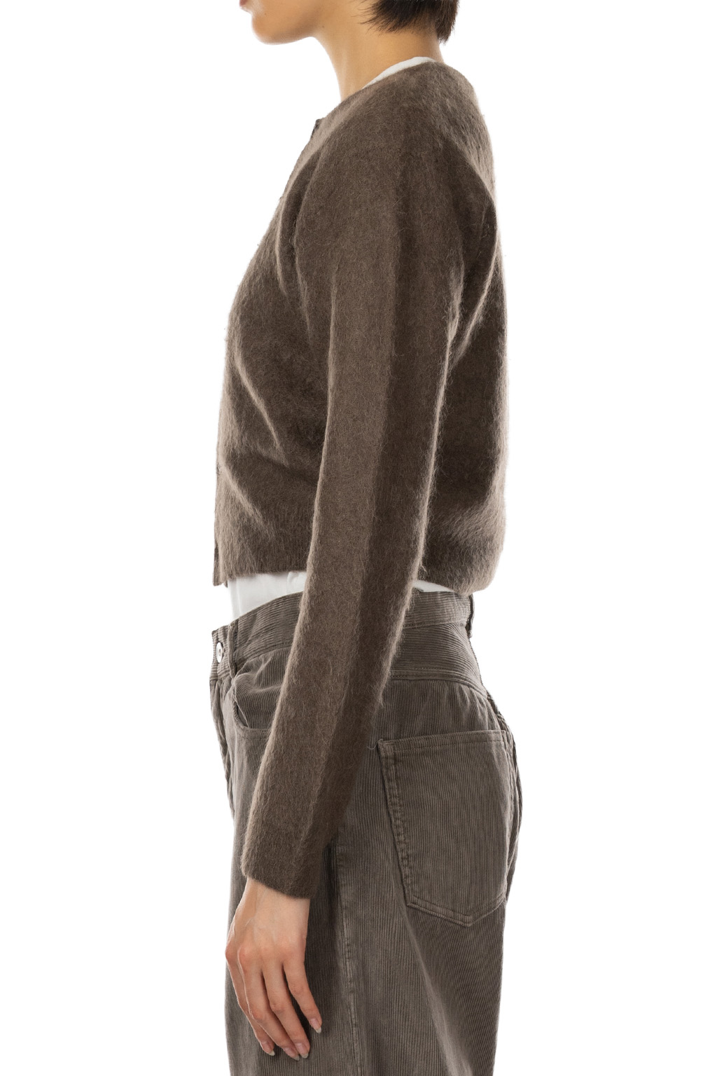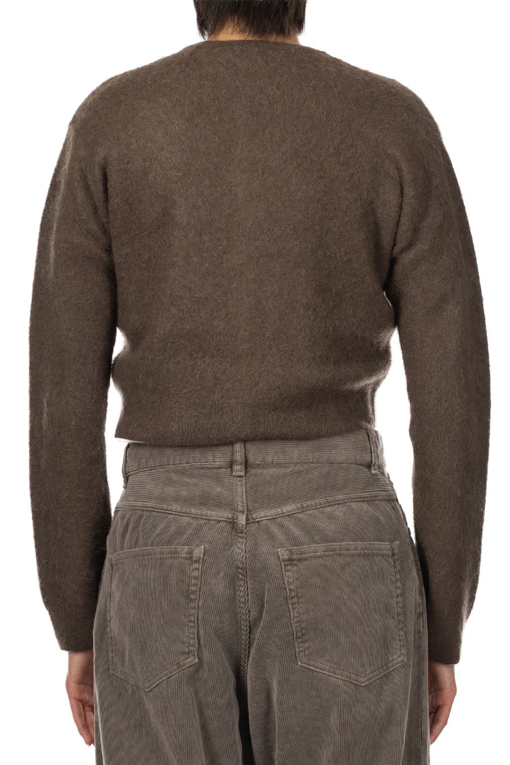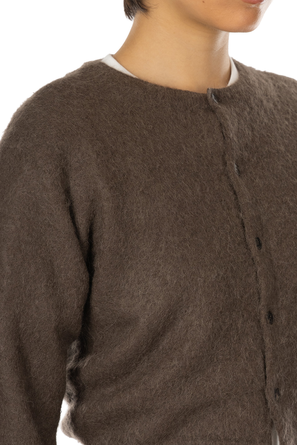 Garment-Dyed Baby Alpaca Fuzzy Knit Cardigan - Dark Brown